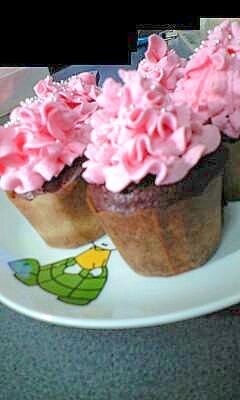ピンクのクリームの可愛いカップケーキ Nozo時々cirebo 美味しい 可愛い娘たち